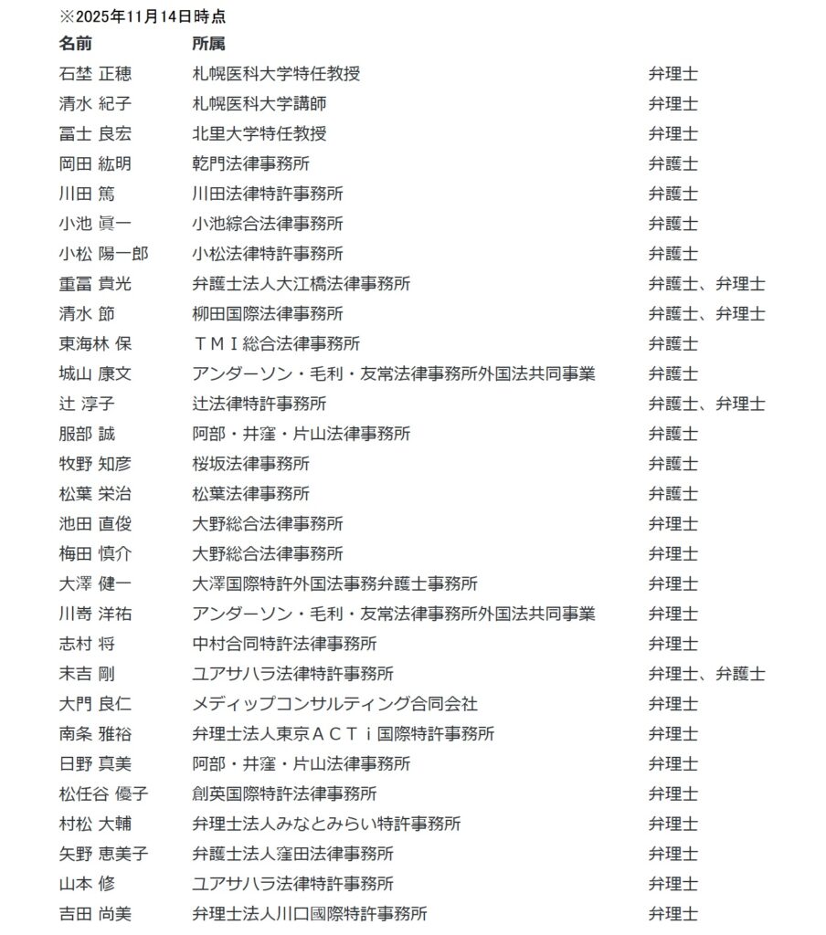 また、以下のとおりの専門委員候補が厚労省ホームページの「医薬品特許情報」サイトに公開されています。