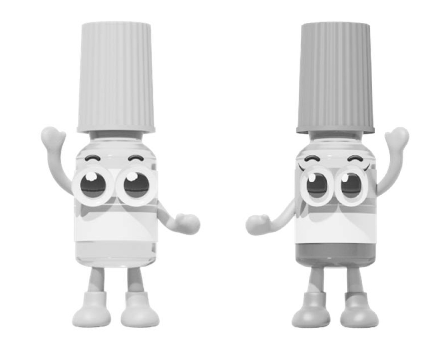 「ひとみの乾きうるおし隊」と「ひとみの疲れほぐし隊」はソフトサンティアとソフトサンティアひとみストレッチのキャラクター(参天ソフトサンティアサイト)。「ひとみの乾きうるおし隊」が上記左の図形(右手を挙げ、まつげなし)で第6962430号、「ひとみの疲れほぐし隊」が上記右の図形(左手を挙げ、まつげあり)で第6962431号として商標登録されています。瞳に関わることから、大きな瞳が特徴的です。それぞれの名称も商標登録されています(第6962427号、第6962428号)。